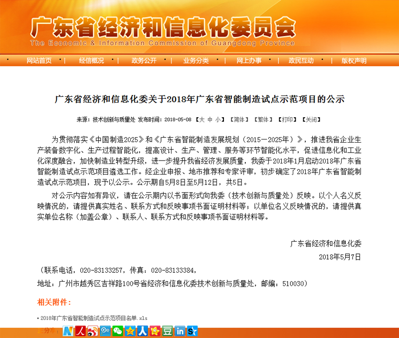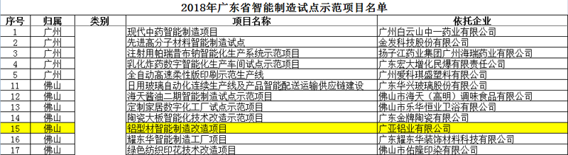 喜訊:廣亞鋁業(yè)入選2018年廣東省智能制造試點(diǎn)示范項(xiàng)目企業(yè)