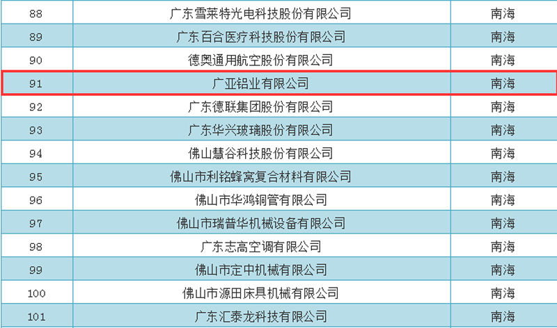 喜訊:廣亞鋁業(yè)入選首批佛山市“專精特新”企業(yè)名單