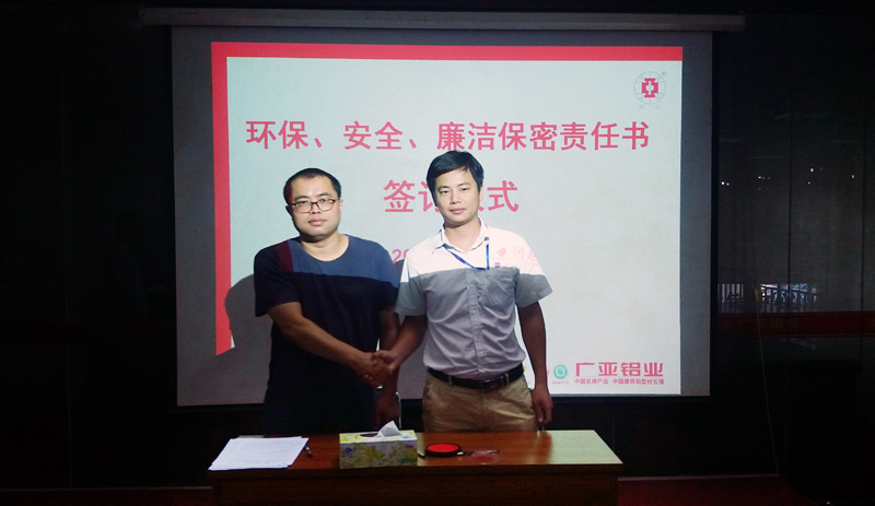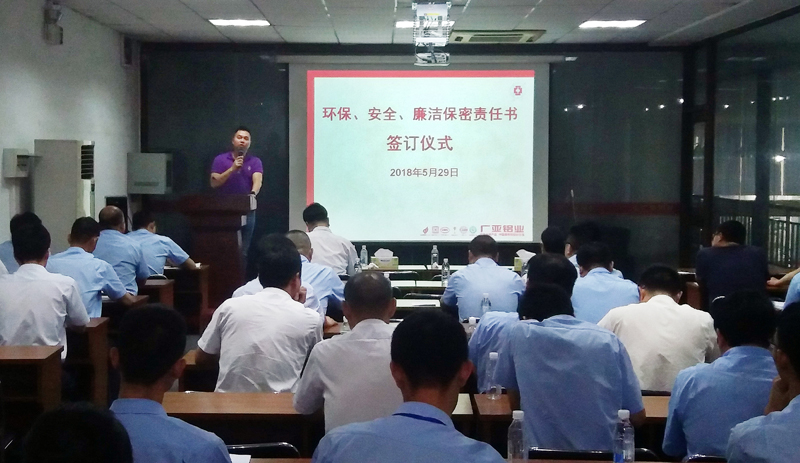 全面強化管理責任,廣亞鋁業(yè)事業(yè)部舉行環(huán)保、安全、廉潔保密責任書簽訂儀式。