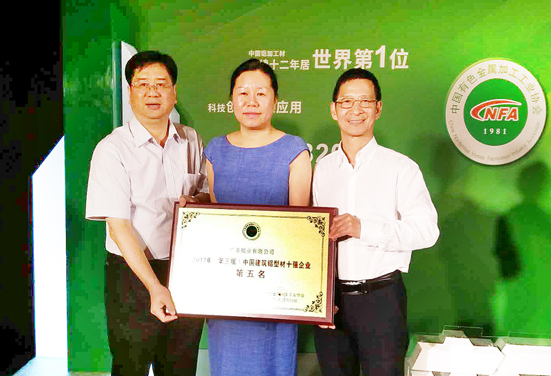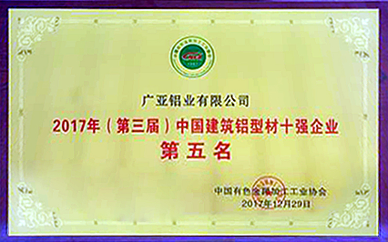 廣亞鋁業(yè)榮獲中國(guó)建筑鋁型材五強(qiáng)