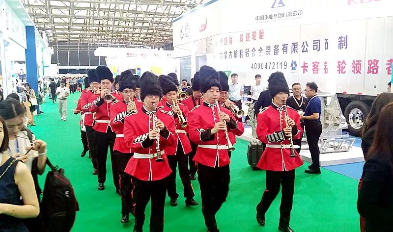 展會(huì)開幕式樂隊(duì)行進(jìn)在展館。
