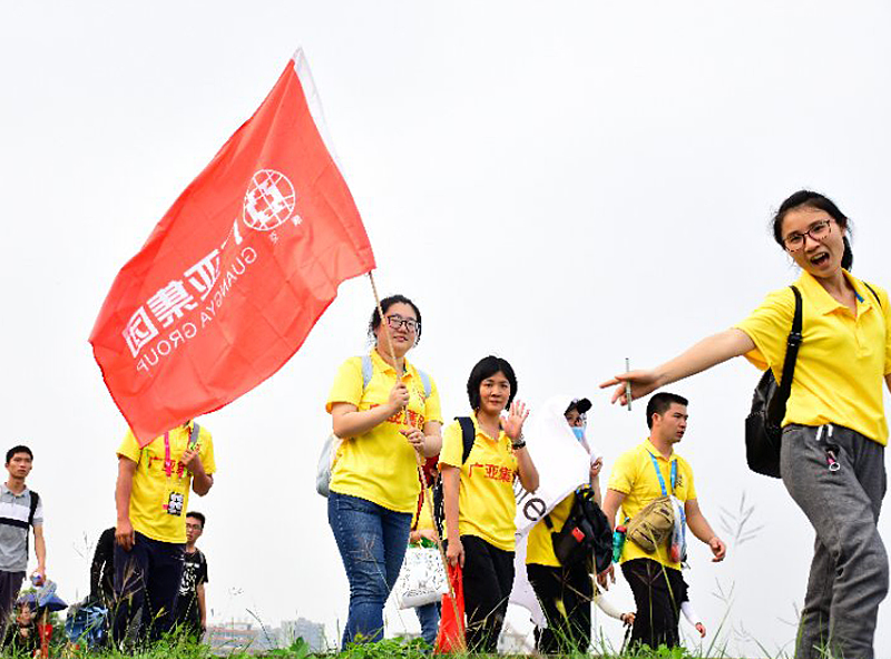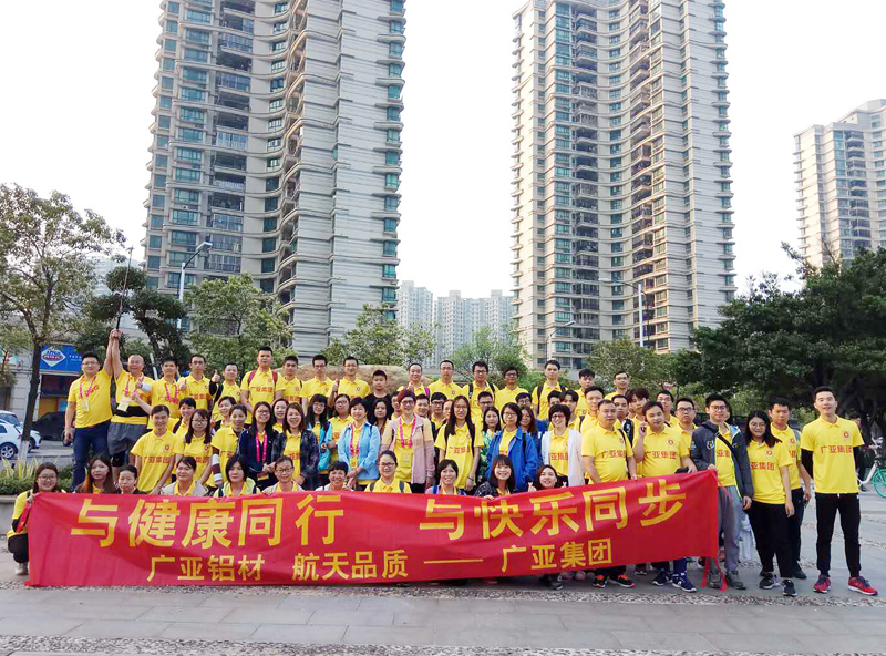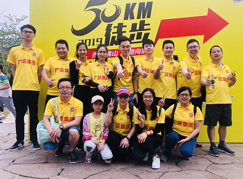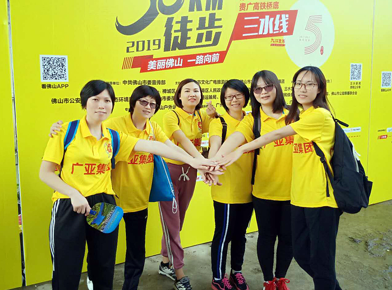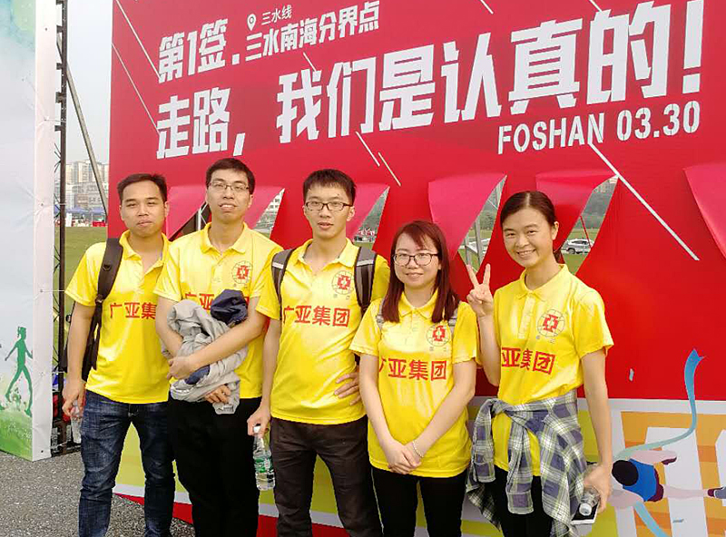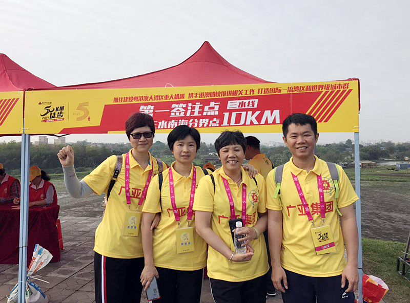陽春三月,鶯飛草長。第五屆佛山50公里徒步益行如期而至。3月30日,佛山五邑50萬人,以腳步丈量大地,再次精彩演繹五龍聚首,齊集世紀(jì)蓮的壯舉。 身處珠江西岸、灣區(qū)腹地的佛山,現(xiàn)代都市、田園風(fēng)光,一路且行且影,風(fēng)景盡入行囊。迎朝露,送晚霞。與健康為伍,邂逅天然汗蒸;和自然作伴,飽覽城市風(fēng)貌。 廣亞集團(tuán)旗下廣亞鋁業(yè)、廣成鋁業(yè)、廣航科技、正來科技等一眾小伙伴,兵分三路,自三水、南海、順德向禪城進(jìn)發(fā),在廣亞紅的旗幟下,黃衫軍歷經(jīng)一日遠(yuǎn)足,先后成功會(huì)師。傍晚的世紀(jì)蓮,華燈初上,廣亞紅黃雙色交織,光波以超強(qiáng)的穿透力為這個(gè)城市增添了一抹亮色。