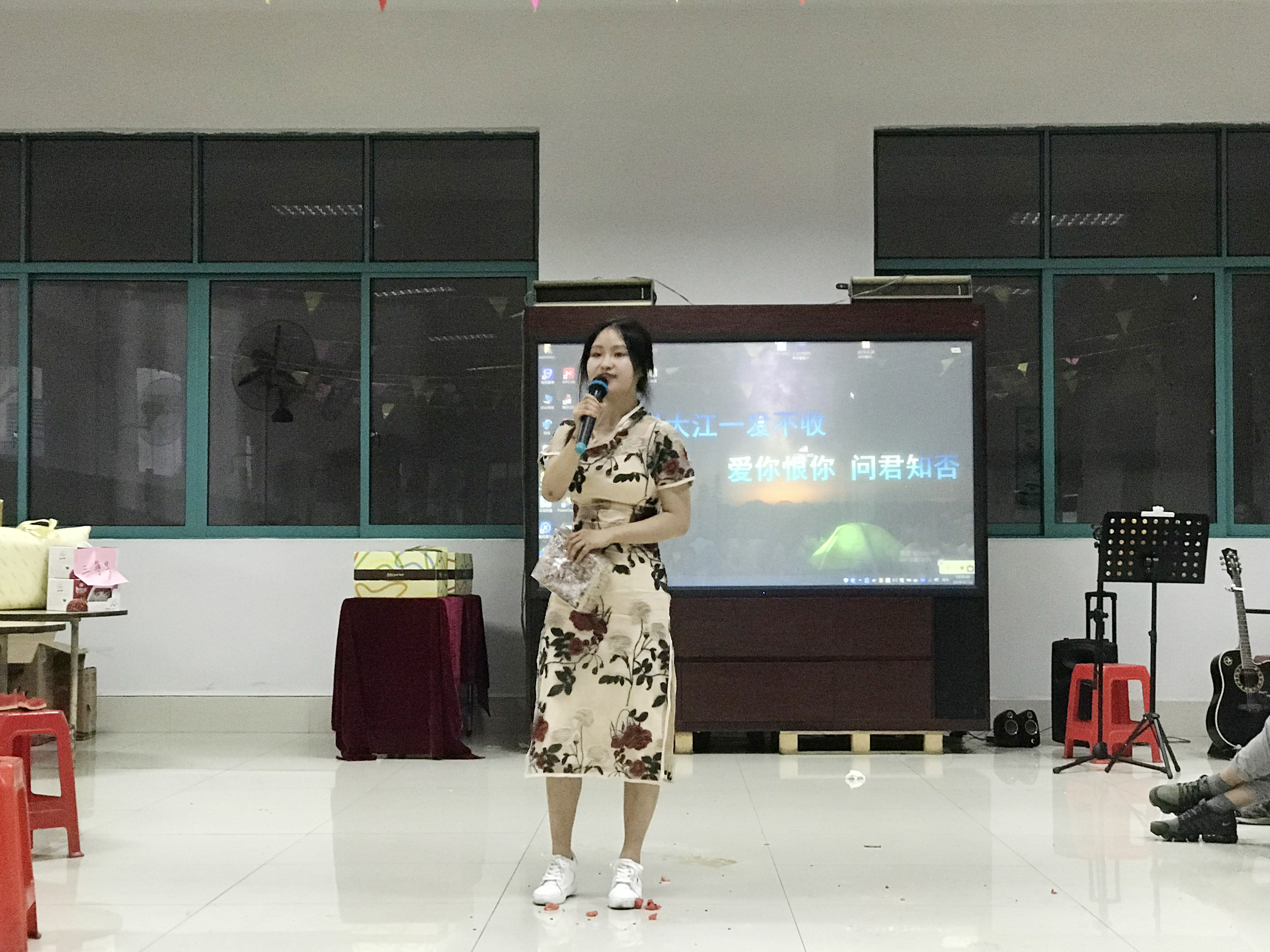 同學(xué)們在廣亞舉辦的集體生日晚會上表演節(jié)目