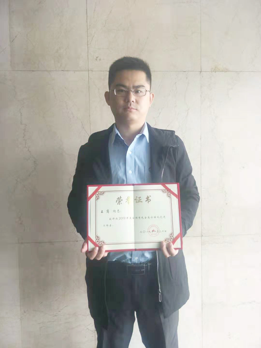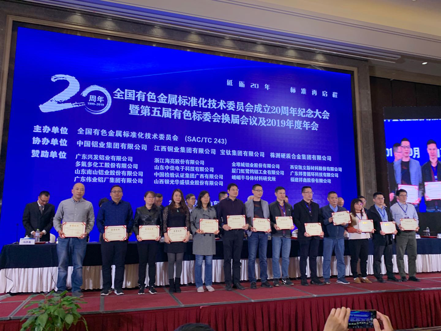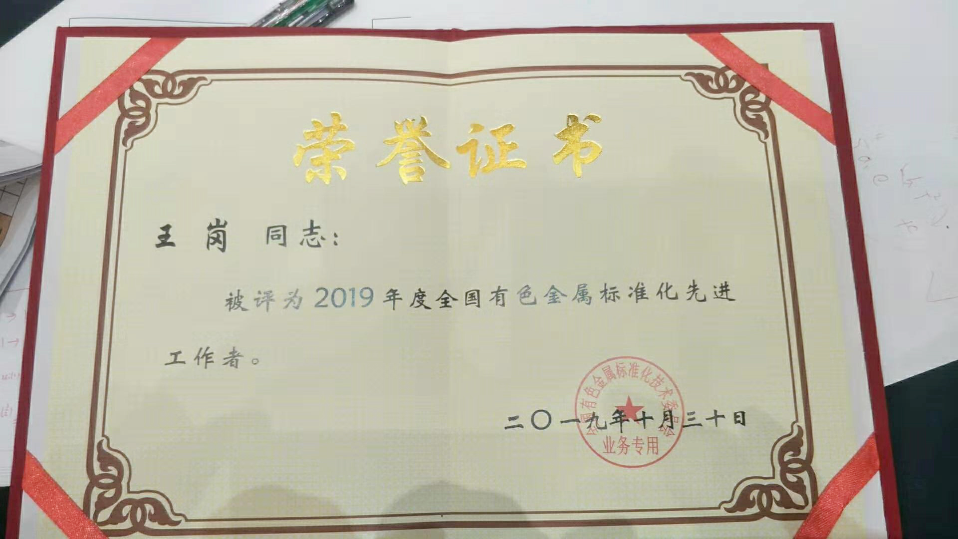 王崗獲得“2019年度有色金屬標準化先進工作者”榮譽稱號(右二)
