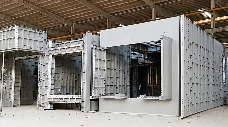 而樓梯觀察口鋁模板系統(tǒng),是在由垂直設(shè)置形成樓梯直角位的橫向模板或豎向模板上設(shè)一觀察窗口,通過觀察窗口的開啟窗,可在混凝土澆筑完成后,隨時觀察混凝土的澆筑狀況,從而提高混凝土的澆筑效率和澆筑質(zhì)量。 墻柱、樓面、陰角等鋁模板系統(tǒng)與上述鋁模板系統(tǒng)一樣,都是繼木模板、鋼模板之后出現(xiàn)的新一代綠色建筑技術(shù),他系統(tǒng)解決了傳統(tǒng)模板存在的缺陷,具有施工周期短、重復(fù)利用率高,平均使用成本低、施工精度高等優(yōu)點。