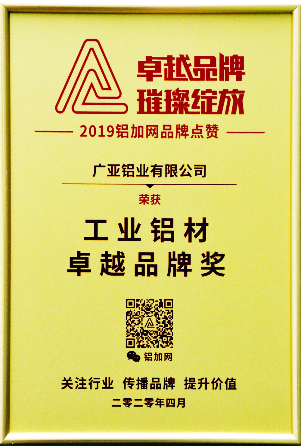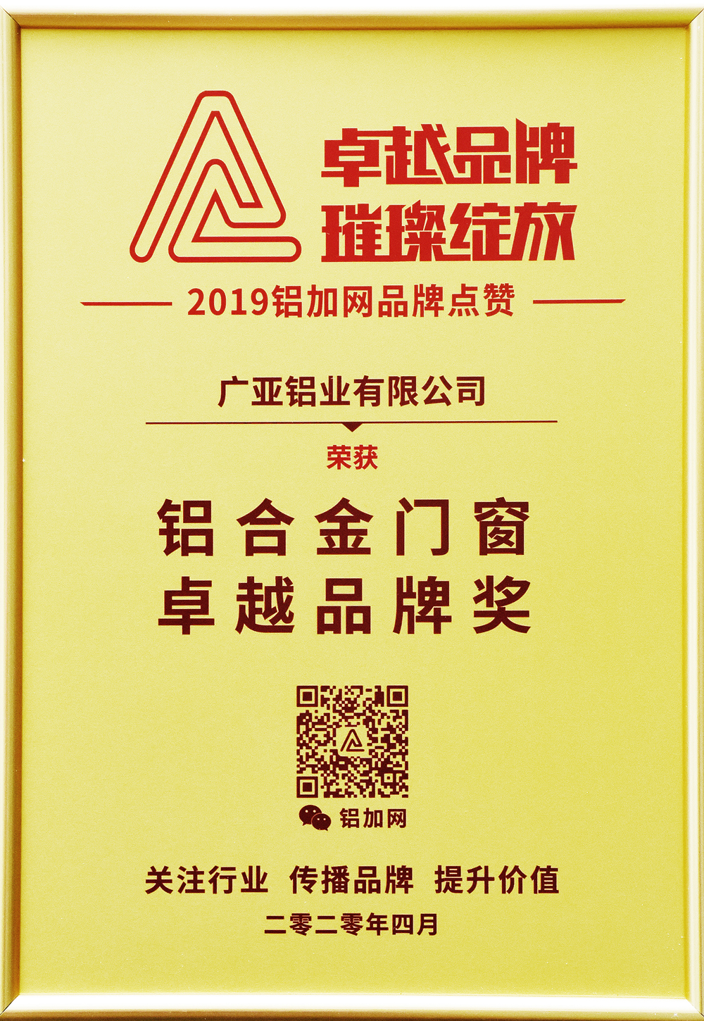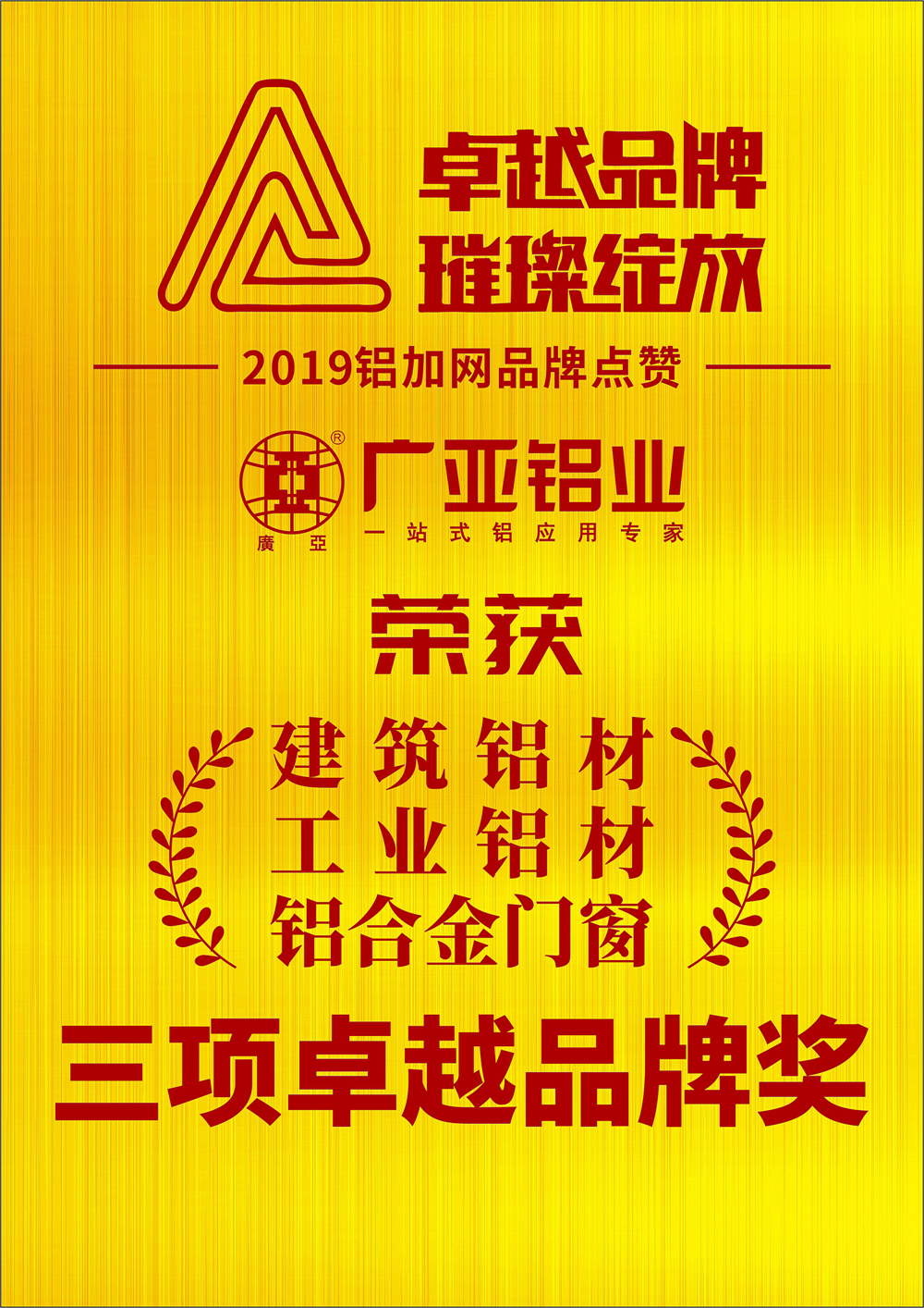 近日,從鋁加網(wǎng)獲悉,經(jīng)過全國用戶歷時半年的網(wǎng)絡(luò)票選,2019年鋁加網(wǎng)品牌點(diǎn)贊排行榜終于榮耀出爐。廣亞鋁業(yè)歷經(jīng)24年厚積薄發(fā),不負(fù)眾望,從800多家品牌中脫穎而出,一舉斬獲建筑鋁材、工業(yè)鋁材、鋁合金門窗3項卓越品牌大獎。