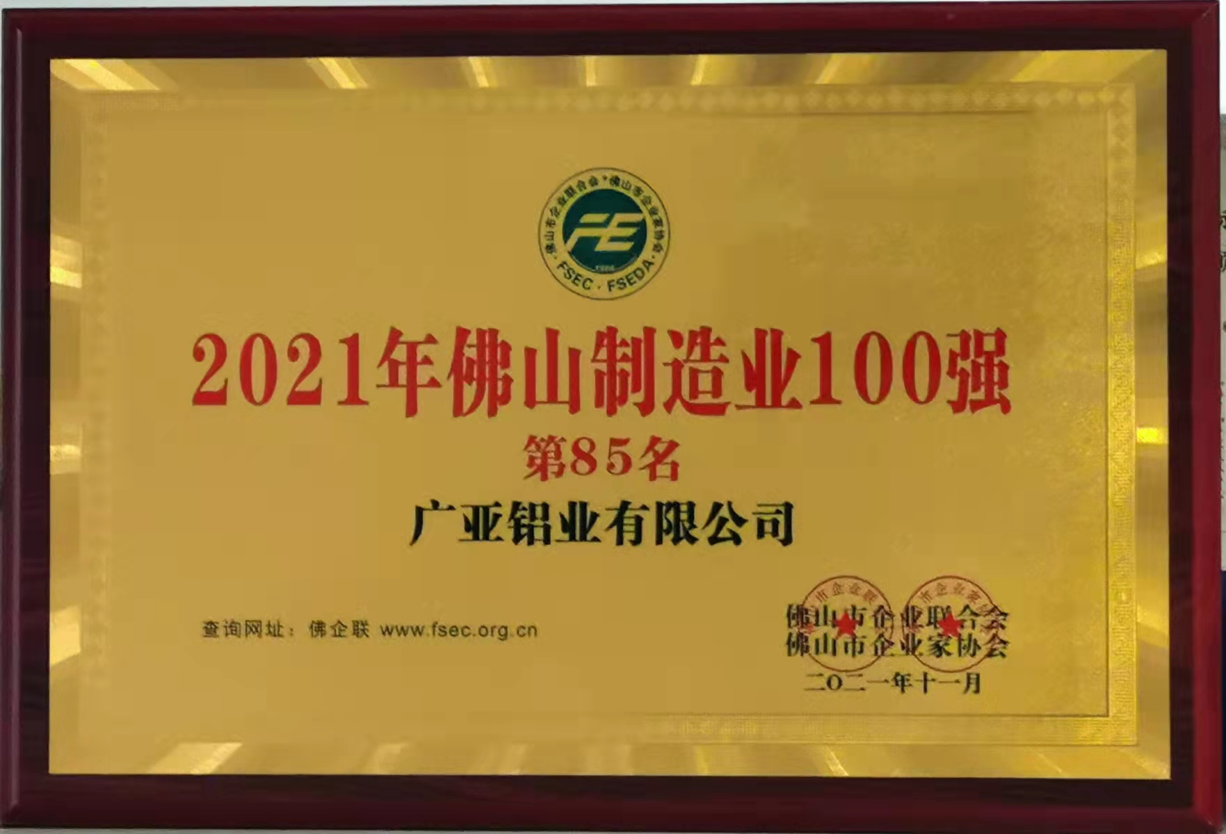 近日,由佛山市企業(yè)聯(lián)合會、佛山市企業(yè)家協(xié)會聯(lián)合發(fā)布的《佛山制造業(yè)100強》榜單出爐,作為中國鋁材行業(yè)的領軍者,廣亞鋁業(yè)憑借雄厚的品牌綜合實力榮耀登榜。
