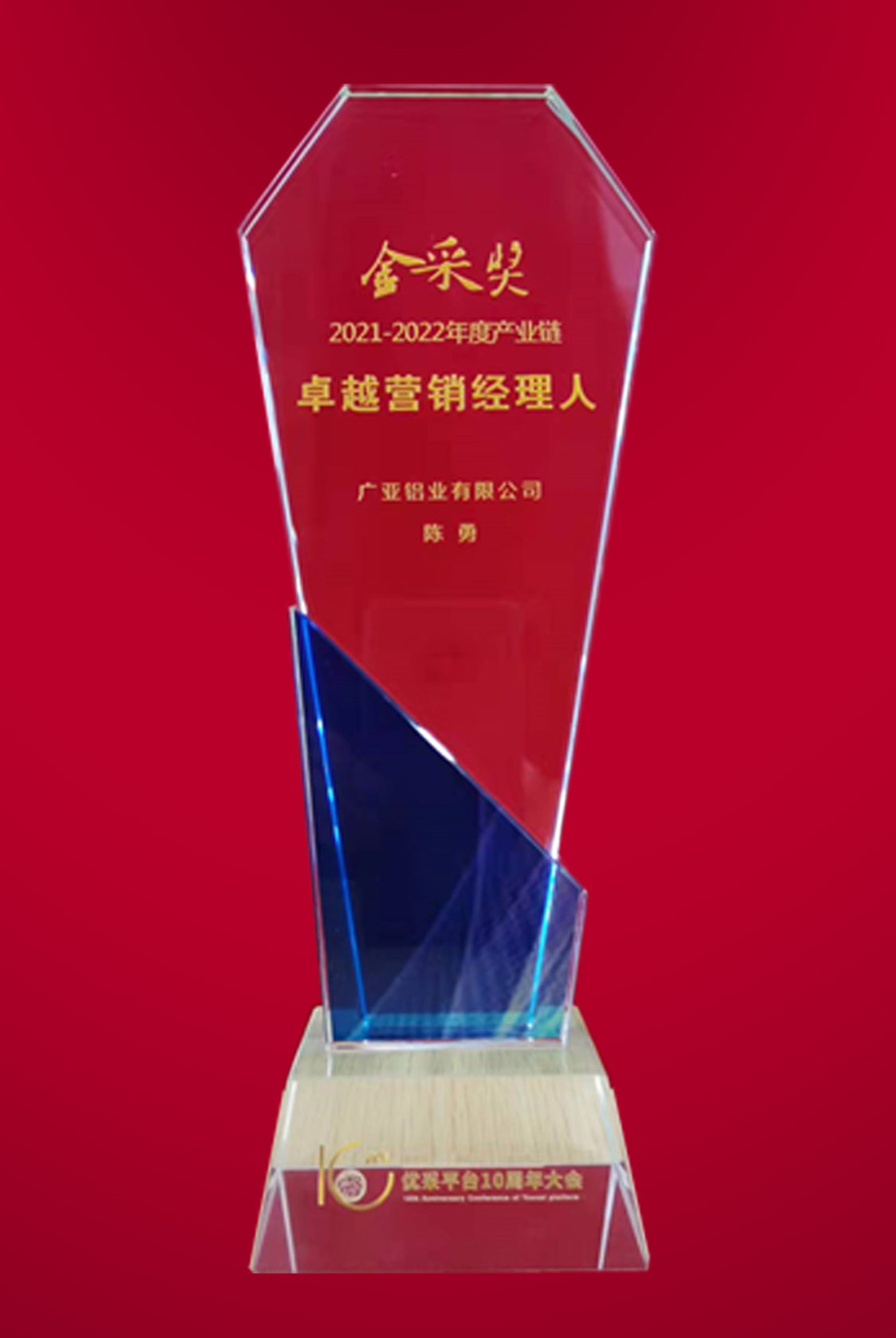 廣亞鋁業(yè)營銷總經理陳勇、營銷副總經理蔣炎華分別被授予優(yōu)采“金采獎”——2021-2022年度產業(yè)鏈“卓越營銷經理人”、“卓越工程經理人”稱號,向行業(yè)各界展示了