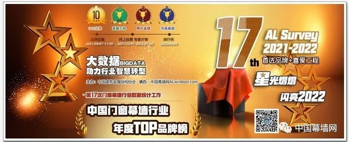 2022年3月10日,由中國建筑金屬結構協(xié)會主辦,中國幕墻網承辦的“2021-2022年度第十七屆AL-Survey門窗幕墻行業(yè)讀者調查暨‘首選品牌+年度工程’評選活動”