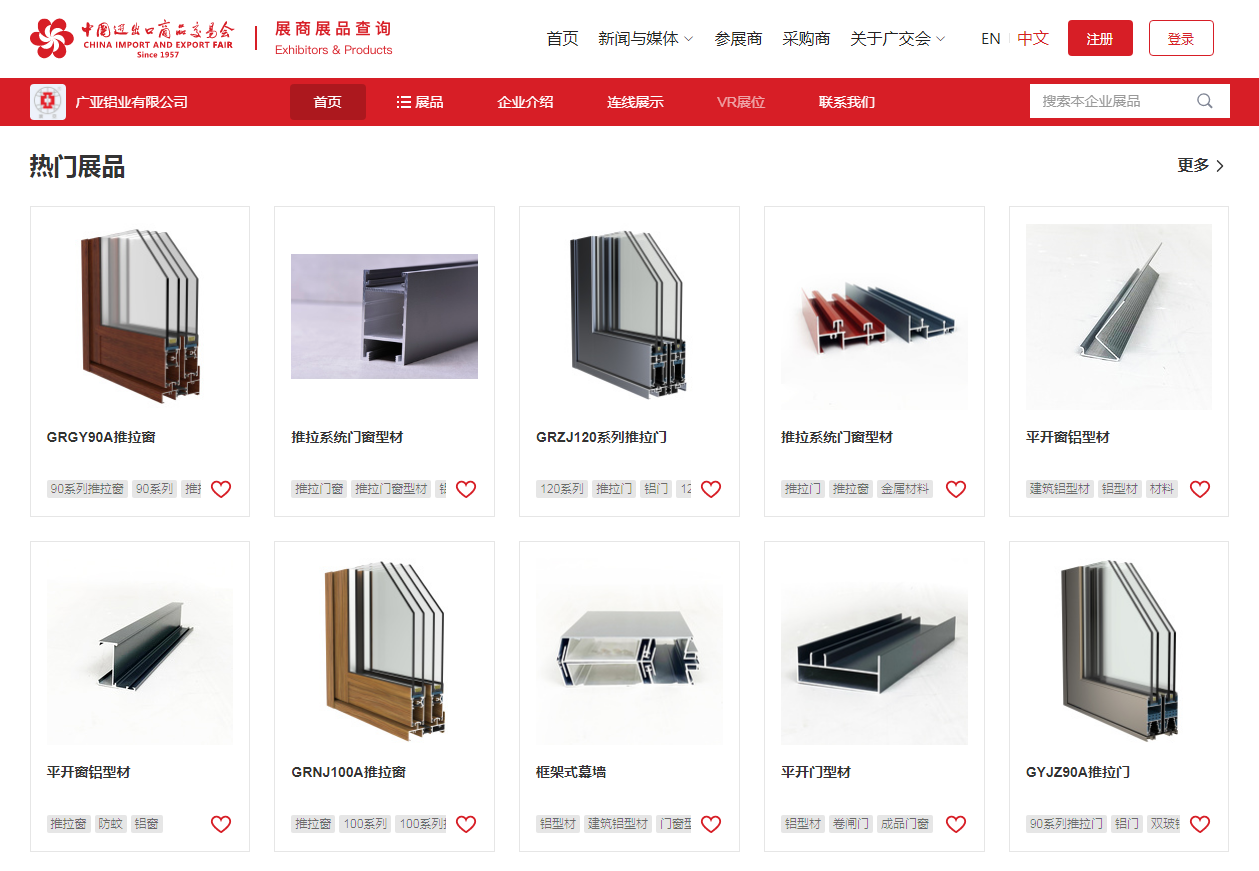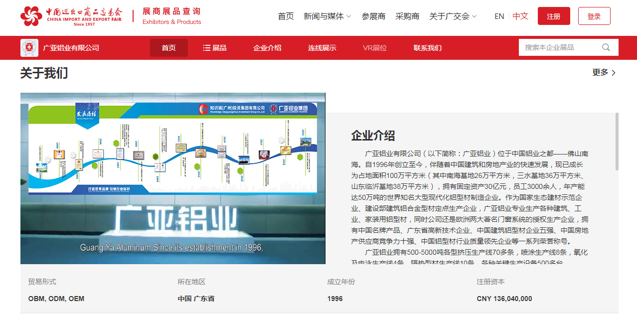 作為每年參展的“老廣交”,廣亞鋁業(yè)已積累一套成熟的運作經(jīng)驗,依托廣交會線上平臺,前瞻布局“云展廳”,以圖片、視頻、3D、VR等多維展示形式,通過線上