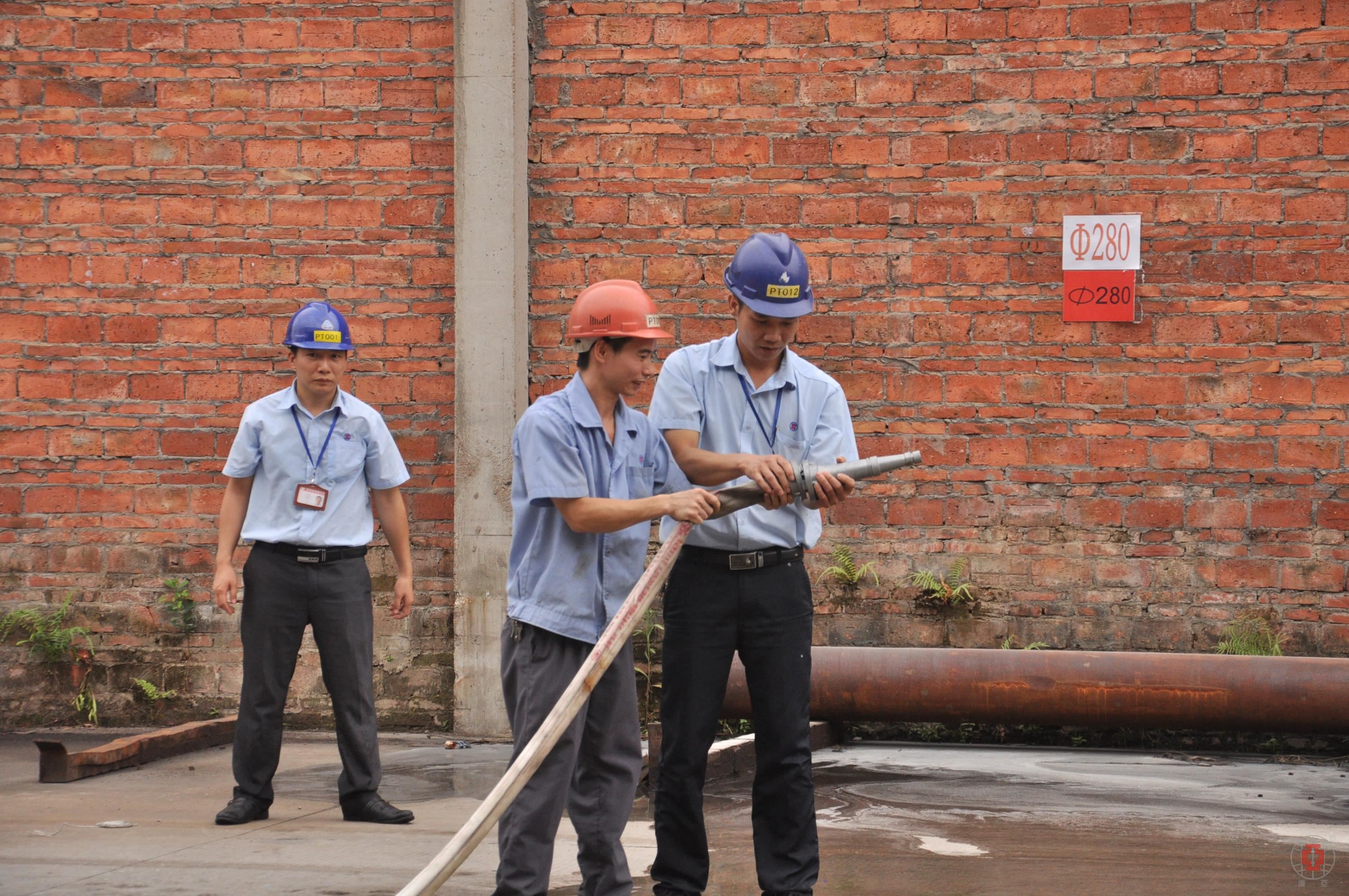 下午三點(diǎn)正,演練活動(dòng)正式開(kāi)始,噴涂車間20名員工代表迅速集中到E線后方的空地,隨后,噴涂車間文堅(jiān)全主任做動(dòng)員發(fā)言,向參與人員簡(jiǎn)要介紹了消防安全知識(shí)。接著,由保安隊(duì)班長(zhǎng)陶世軍負(fù)責(zé)講解滅火器和消防栓的使用原理及相關(guān)注意事項(xiàng),保安隊(duì)員譚龍等人示范了滅火器和消防水槍的使用方法,并指導(dǎo)參與人員進(jìn)行模擬滅火演練。