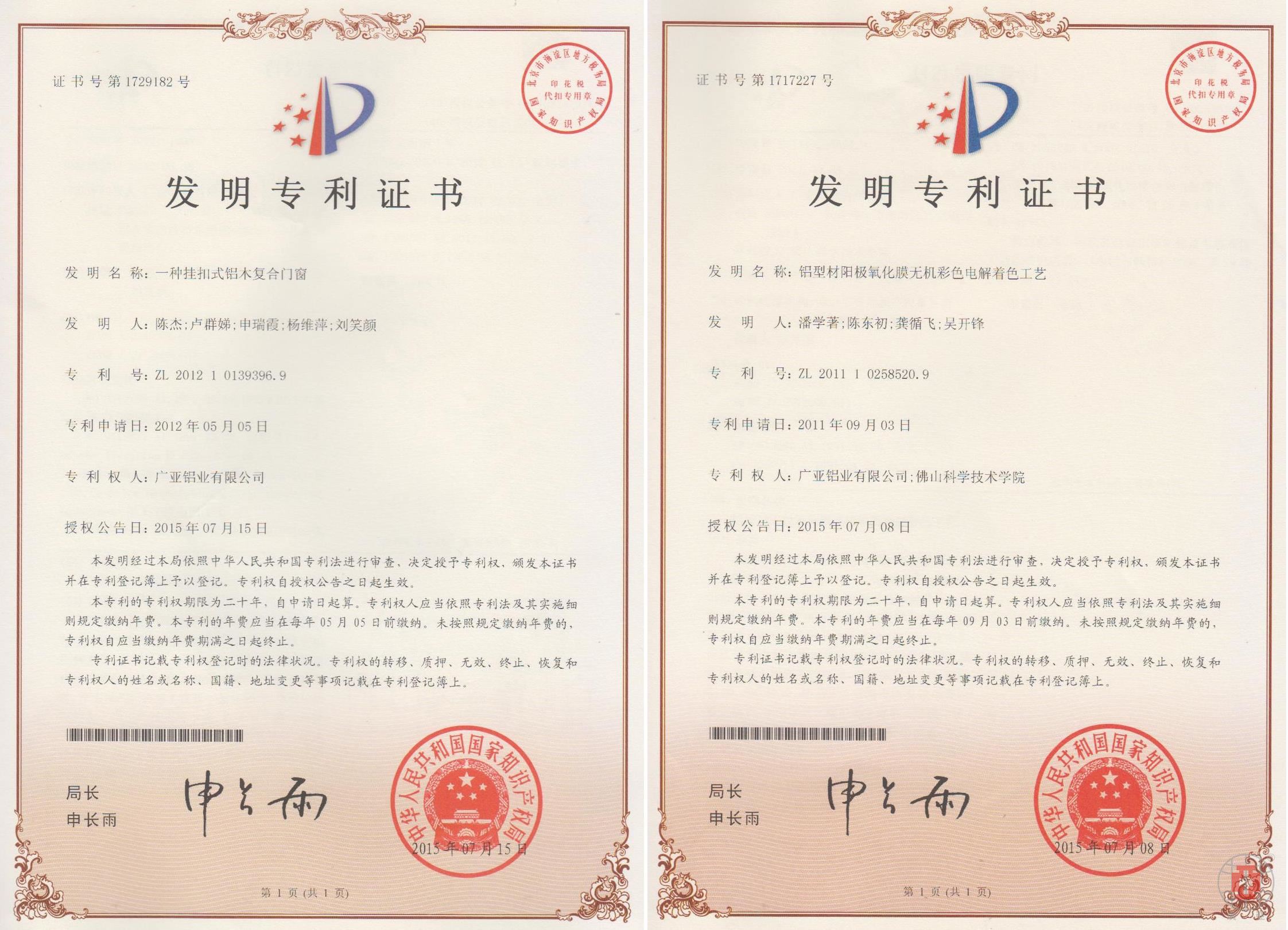 近期,在我司技術(shù)人員的不懈努力下,公司新增三項發(fā)明專利獲得國家知識產(chǎn)權(quán)局授權(quán),這三項發(fā)明專利分別是鋁型材陽極氧化膜 無機彩色電解著色工藝、一種掛扣式鋁木復合門窗、一種門窗型材及其安裝方法。截至目前,我司已取得國家專利授權(quán)228件,其中 發(fā)明專利4件,實用新型專利56件,外觀設(shè)計專利168件,具有很高的實用價值。